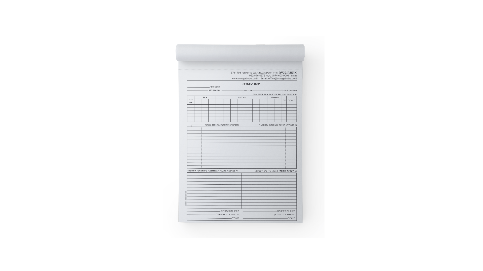 הקפדה על חומרי גלם איכותיים, הדפסה חדה וברורה, כריכה חזקה וגימור מקצועי – מבטיחים פנקסים עמידים שמתאימים לעבודה יומיומית בשטח לאורך זמן.