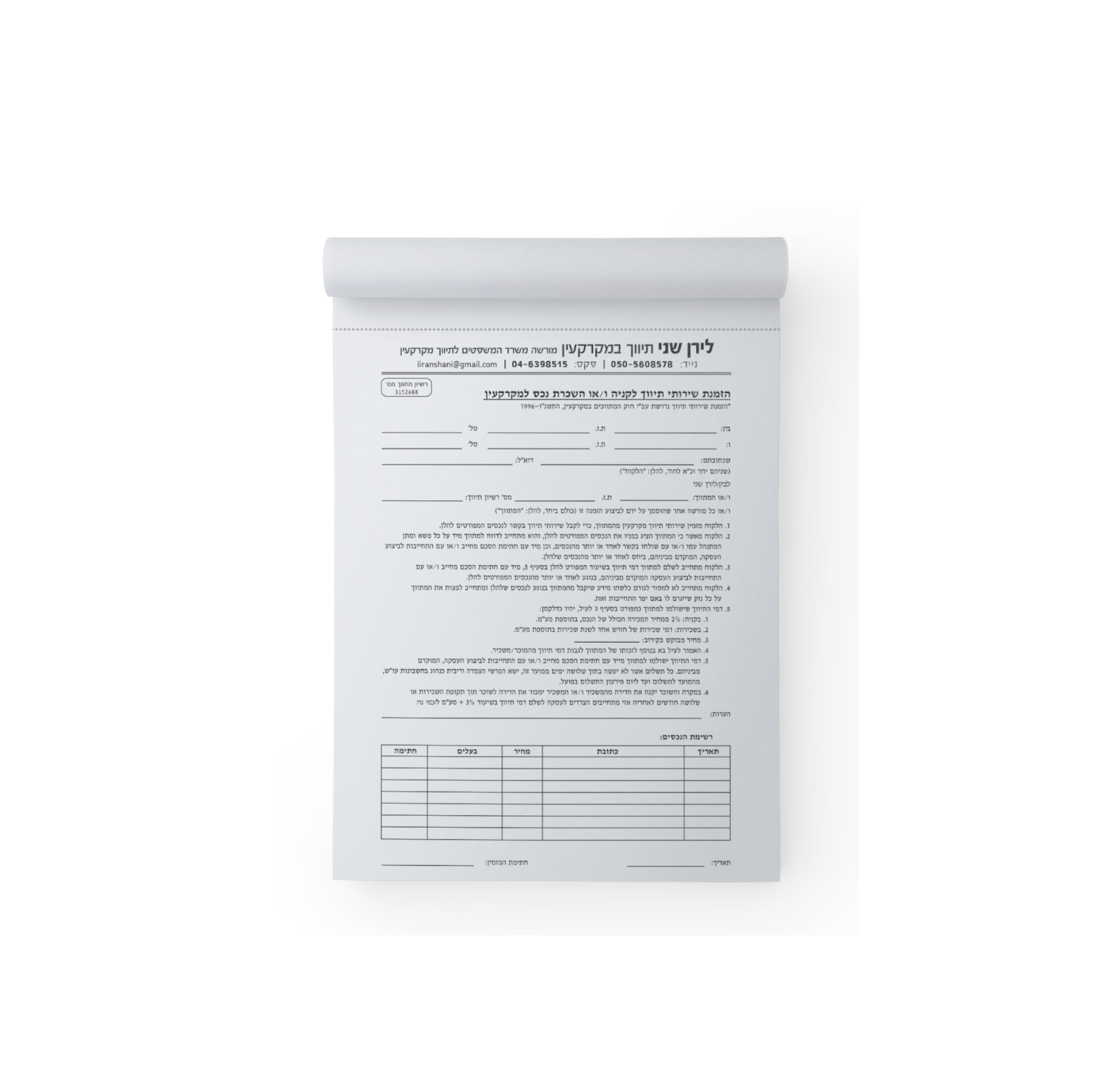 בנוסף, ניתן לשלב עיצוב גרפי מותאם הכולל לוגו, פרטי העסק, תנאים, הערות קבועות ומיתוג מלא – כך שהפנקס אינו רק כלי תפעולי, אלא גם אמצעי מיתוג שמלווה את העסק בכל מפגש עם הלקוח.